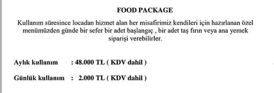 - Yiyecek ve içecek harcamalarında yüzde 10 indirim