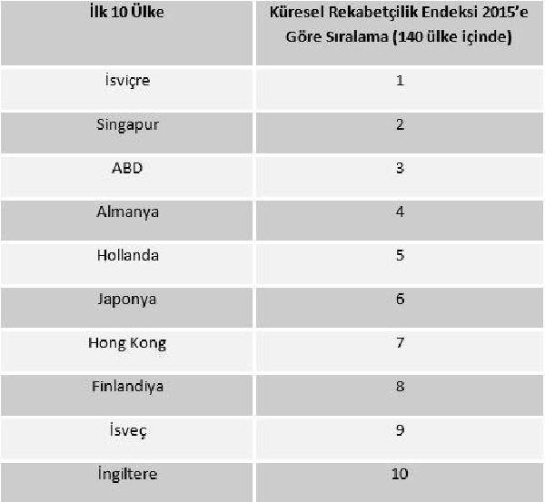 İsviçre'de yerleşik olan Dünya Ekonomik Forumu'nun (World Economic Forum), Türk Sanayici ve İşadamları Derneği (TÜSİAD) – Sabancı Üniversitesi Rekabet Forumu ile çalışmalarını ortak yürüttüğü 2015-2016 Küresel Rekabet Gücü Raporu sonuçlarını kamuoyuna açıkladı.