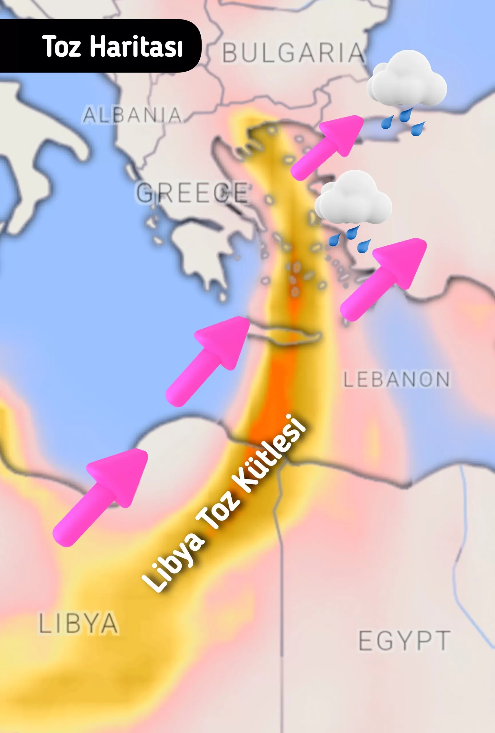 Pazartesi günü için Libya üzerinden Türkiye'ye toz kütlesi ve çamur yağmuru bekleniyor. Pazartesi günü hava daha kötü olacak ve vatandaşlara mecbur kalmadıkça sokağa çıkmaması önerilecek.