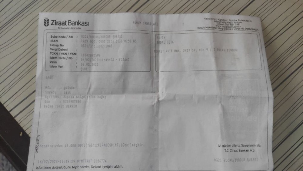 Kahramanmaraşlı merkezli iki büyük deprem, 11 ilde yıkım ve can kayıplarına neden oldu. Depremlerin ardından bölgeye yardım seferberliği başladı. Tüm Türkiye elinden gelen yardımları deprem bölgesine göndermeye başladı. Depremzedelere yazılan notlar, çocukların kumbaralarını göndermesi duygusal anların yaşanmasına neden oldu. Bir duygulandıran davranış da Burdur'un Bucak ilçesinde yaşayan 94 yaşındaki Gülsüm Işık'tan geldi. Işık, 6 yıl önce vefat eden kardeşinden kendine kalan 45 bin TL'yi depremzedelere ulaştırılmak üzere AFAD'a bağışladı.