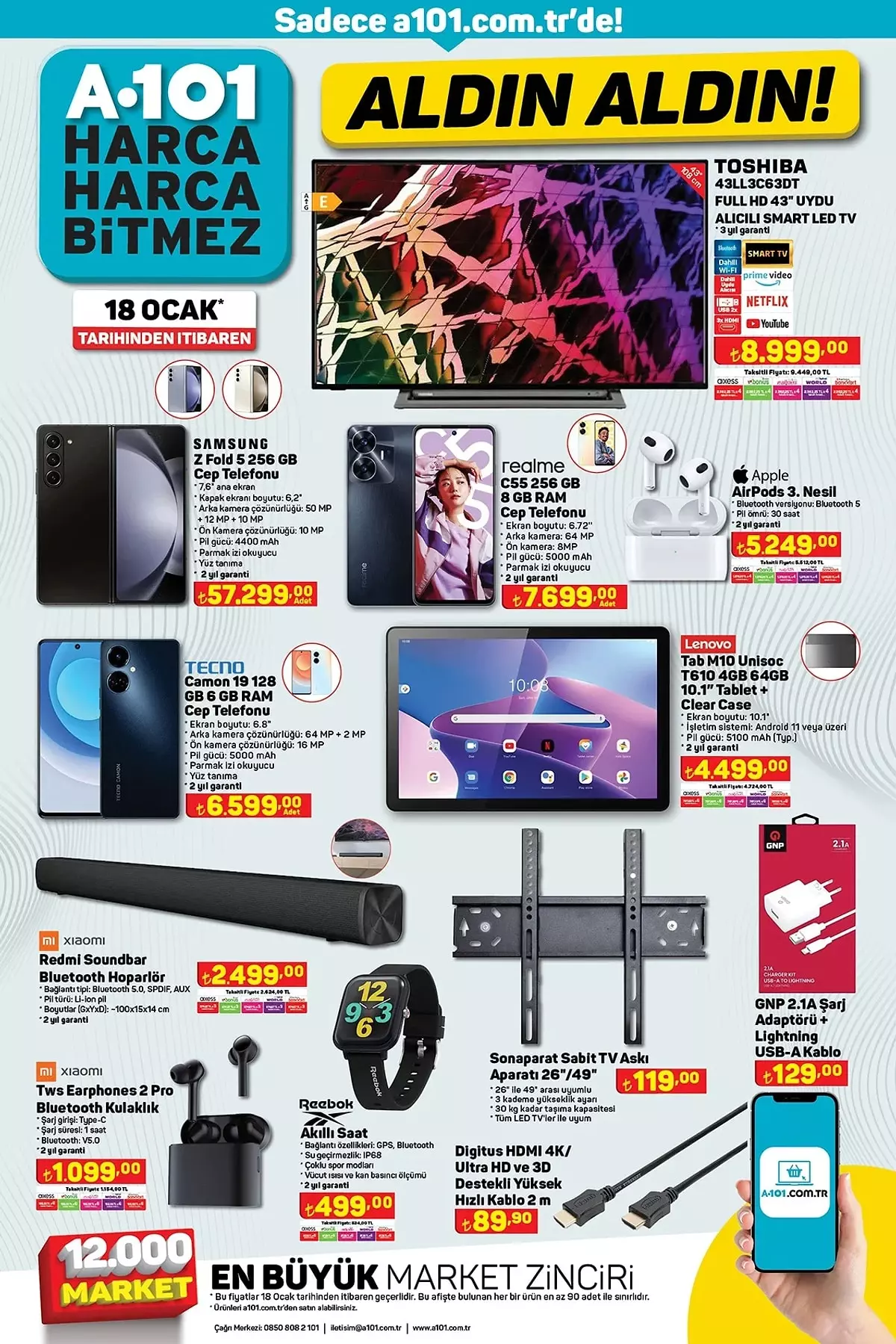 A101 aktüel ürün kataloğunda dev indirimler! Televizyon, Kulaklık, Klavye ve Akıllı Telefonda İndirim