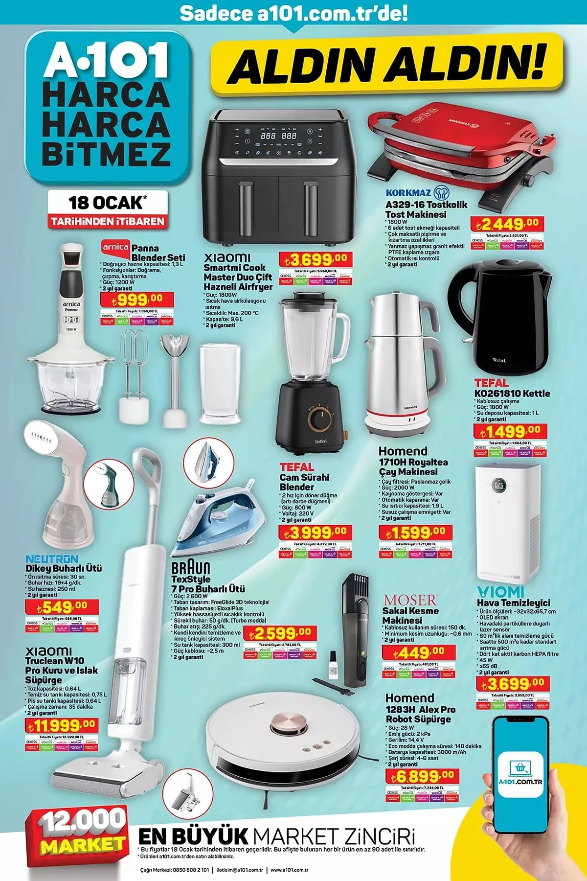 19 Ocak Cuma günü fırsatlarla dolu bir kampanya sizleri bekliyor. A101'in yeni aktüel ürünler kataloğunda pek çok teknoloji ürünü uygun fiyattan satışa sunuldu. Bu indirim fırsatları, teknolojik ürünlerden mutfak gereçlerine, günlük ihtiyaç malzemelerinden elektronik cihazlara kadar geniş bir yelpazeyi kapsıyor.