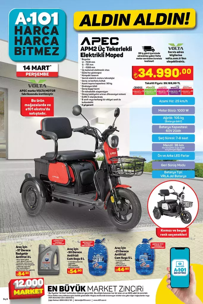 APEC'İN Volto motor fabriksaında ürettiği, APM2 Üç tekerlikli elektrikli moped'in 34.990 TL'Ye satılacak.