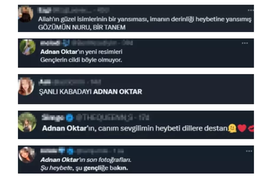 Uzun bir hapis cezasına çarptırılan Oktar'ın cezaevinde çekilen görüntülerinde, uzattığı saç ve sakallarını boyattığı göze çarpıyor. "Kedicik" olarak bilinen müritlerinin yayınladığı fotoğraflara sosyal medyadan gelen bazı yorumlar şöyle: