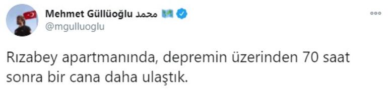 AFAD Başkanı Güllüoğlu açıklamasında, 'Rızabey apartmanında, depremin üzerinden 70 saat sonra bir cana daha ulaştık' dedi.