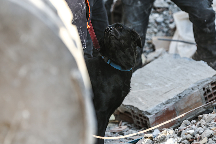 Sivil toplum kuruluşları başta olmak üzere AFAD, Jandarma Özel Asayiş Komutanlığı (JÖAK), Polis Arama Kurtarma (PAK) ve itfaiyenin onlarca eğitimli köpeği depremin ilk gününden itibaren sahada yer aldı.