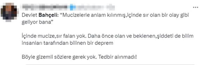 Bahçeli'nin konuşması sırasında kullandı "Sır" ifadesi kısa sürede sosyal medyada gündem oldu. Birçok sosyal medya kullanıcısı Bahçeli'nin bu sözleri için "İyi değerlendirilmeli" yorumunu yaptı.