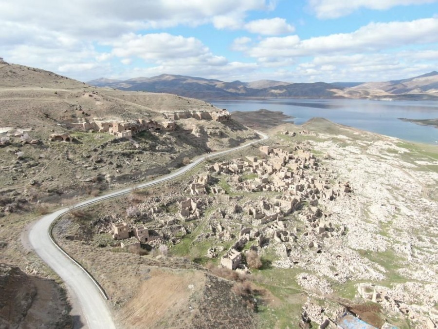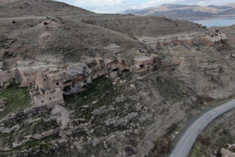 Kocasinan ilçesinde bulunan Eski Taşhan Köyü, Yamula Barajı'nda suların çekilmesinin ardından gün yüzüne çıktı.