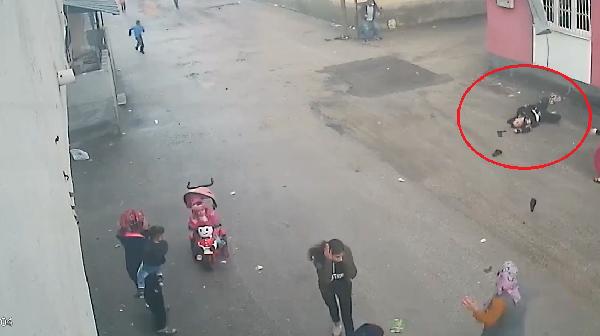 Fatma B.’nin düşme anı, çevredeki bir evin güvenlik kamerasına yansıdı. Sosyal medyada paylaşılan görüntülerde, olay sırasında çevredeki kalabalığın tepki verdiği, çocukların kaçıştığı görüldü. Bölgeye sevk edilen sağlık ekiplerinin ilk müdahalesini yaptığı Fatma B., ambulansla Adana Şehir Eğitim ve Araştırma Hastanesi'ne kaldırıldı. Fatma B.’nin iki ayağı ve belinin kırıldığı saptandı.
