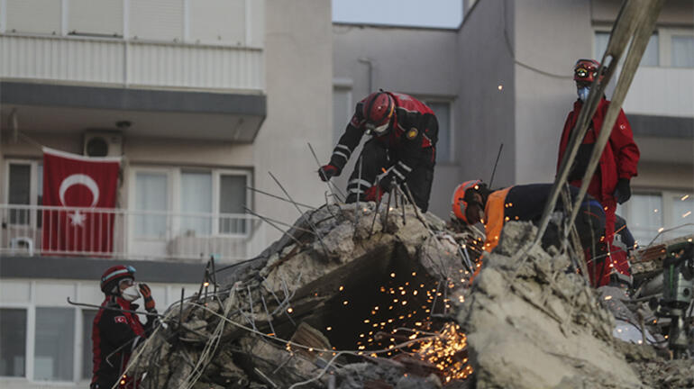 Merkez üssü Seferihisar açıkları olan 6,6 büyüklüğündeki depremden en fazla etkilenen Bayraklı ilçesinde, 9 binada arama kurtarma çalışmaları devam ediyor. Depremde bir marketin bulunduğu alt iki katı çöken Yılmaz Erbek Apartmanı'nda çalışma yürüten arama kurtarma ekipleri, 35 yaşlarında olduğu belirtilen Gülçin Aykut Soydan isimli vatandaşa da ulaştı.