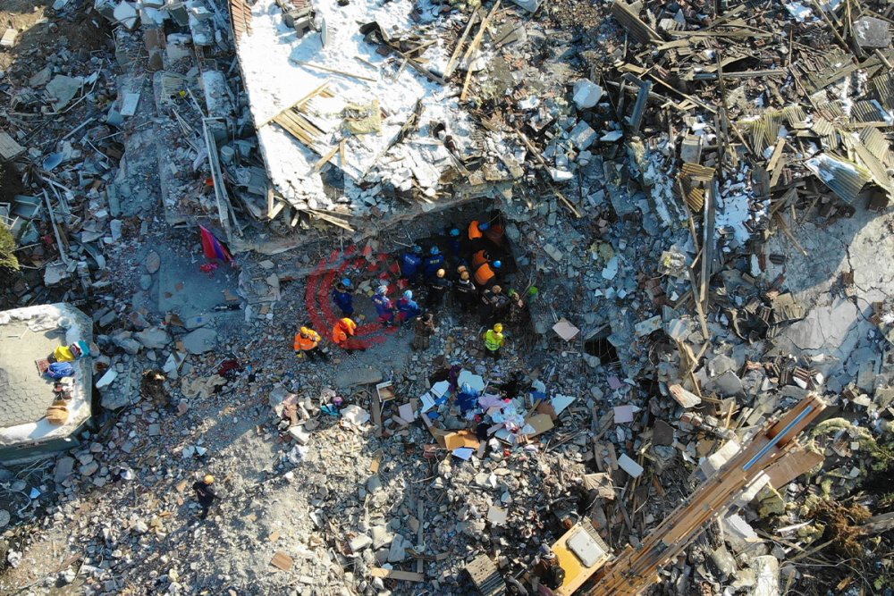 Enkaz arama-kurtarma çalışmaları ise dron ile havadan görüntülendi.