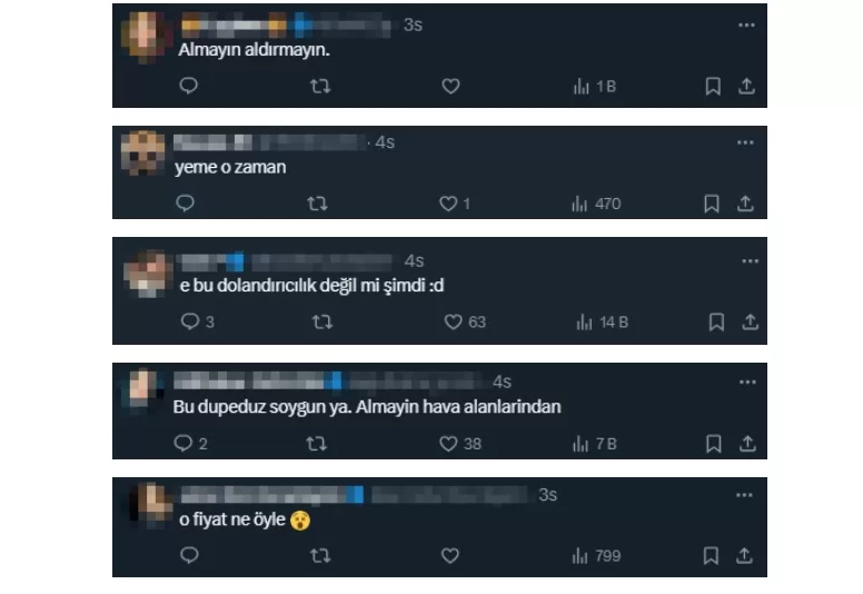 Fişte yazan 310 TL'lik simit ve 190 TL'lik meyve suyu fiyatlarına tepki gösteren sosyal medya kullanıcıları, "Bunun adı soygun", "Bu dolandırıcılık" gibi sert ifadelerle tepkilerini dile getirdi.