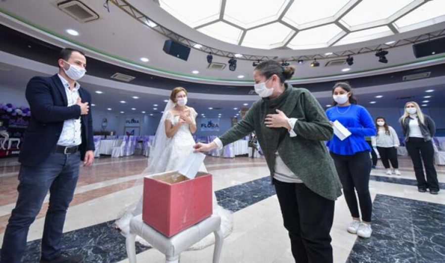 Takı töreni için sandık sistemi kurulacak. Takı töreni sırasında gelin ile damadın yanına sandık yerleştirilecek ve davetliler üzerine adını yazdığı zarfın içerisinde takısını sandığa bırakacak. Bu sırada gelin ve damada tokalaşma ya da sarılma yapılmayacak. Düğün boyunca gelin ve damada, yakınlarına yaklaşmaları halinde maske takılması önerisi yapılacak.