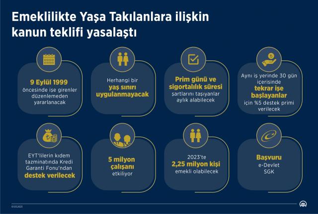 EYT'de herhangi bir yaş sınırı uygulanmayacak. Toplam 5 milyon çalışanı etkileyen düzenlemeyle, 2023 yılında 2 milyon 250 bin kişi emekli olabilecek.