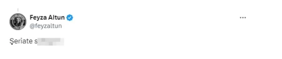 Twitter hesabı üzerinden Farsça bir şiire gelen yoruma, "Şeriate s......" diyerek karşılık veren Feyza Altun, paylaşımının ardından tepkilerle karşılaşmış ve "Tutuklansın" çağrılarına maruz kalmıştı. Altun'un evinde yapılan aramanın ardından gözaltına alındığı belirtildi.