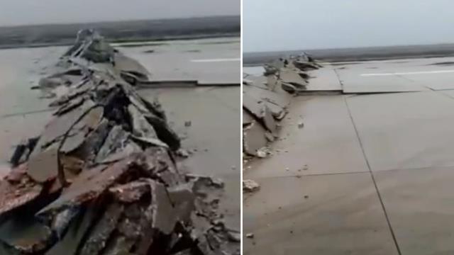 Öte yandan, arama kurtarma çalışmalarının sürdüğü Hatay'da havalimanın pistinde de tahribat oluştu. Hatay Havalimanı'nın pistinin enine doğru yarıldığı, asfaltın kalktığı görüldü.