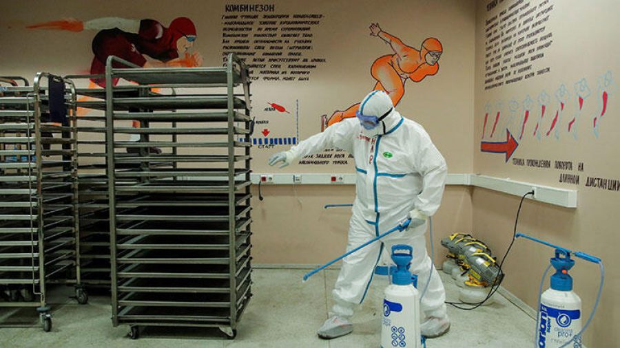Başkent Moskova'daki buz pisti, artan vakalar nedeniyle 1300 yataklı salgın hastanesine dönüştürüldü.