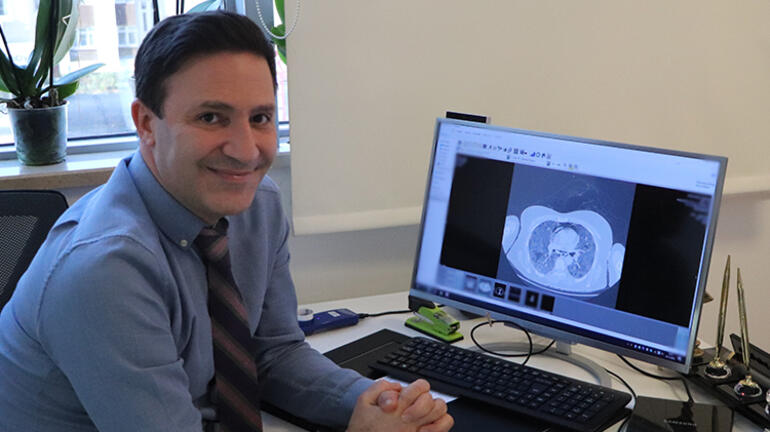 Farklı ailelerden 4 kişinin akciğer tomografilerine bakan Prof. Dr. Özkaya, "82 yaşındaki 4 çocuğu da koronavirüse yakalanmış bir hastanın filmine bakarsak, akciğerlerinde yaygın pnönomoni olduğunu görüyoruz. Bu kişi yoğun bakımda tedavi altına alındı. Artık eskisi gibi ailede tek tük enfektelere bakmıyoruz. Ailenin tamamı enfekte oluyor ve özellikle yaşlıları çok ciddi zatürreye döndürecek klinik durumlarla karşılaşıyoruz. 58 yaşında genç bir annenin akciğerlerine bakıyoruz. 3 çocuğunun hepsi ve eşi de enfekte olmuş. Ailede bir kişi enfekte olunca hepsini enfekte etmiş. Maalesef içlerinde immün direnci en düşük olan ve yaşı en büyük olanın akciğerleri solunum yetmezliğine gidecek şekildedir. Her iki akciğerinde de yaygın infiltrasyonla tedavi veriyoruz. Hasta hayati tehlikeyi atlattı. 63 yaşında bir hastanın akciğerlerini inceliyoruz. 63 yaşındaki bu anne yaşıyor ama bu kişilerinin anneannelerini ve babaannelerini Kovid-19 dolayısıyla kaybettik" diye konuştu.