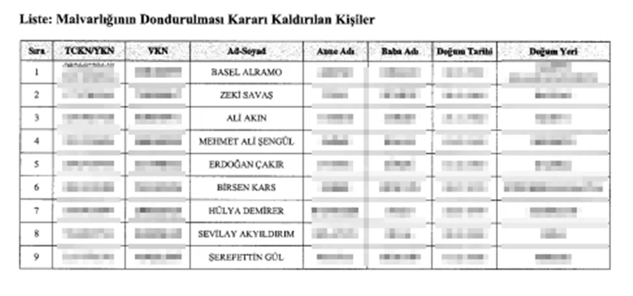 Malvarlığı Dondurma Kararı Kaldırılarak Resmi Gazete'de Yayınlandı
