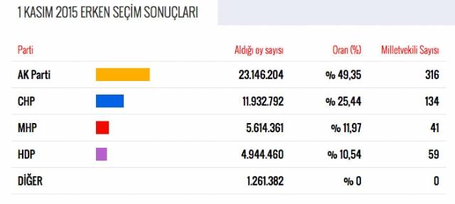 1 Kasım milletvekili seçim sonuçları geldikçe MHP şoka girdi. Milletvekili sayısı bakımından MHP 7 Haziran seçimlerine göre yarı yarıya kayıp yaşadı. İlk kez HDP milletvekili sayısında MHP'yi solladı ve mecliste üçüncü parti konumuna çıktı. MHP ise artık dördüncü parti.