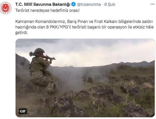 MSB duyurdu! 8 PKK'lı terörist etkisiz hale getirildi