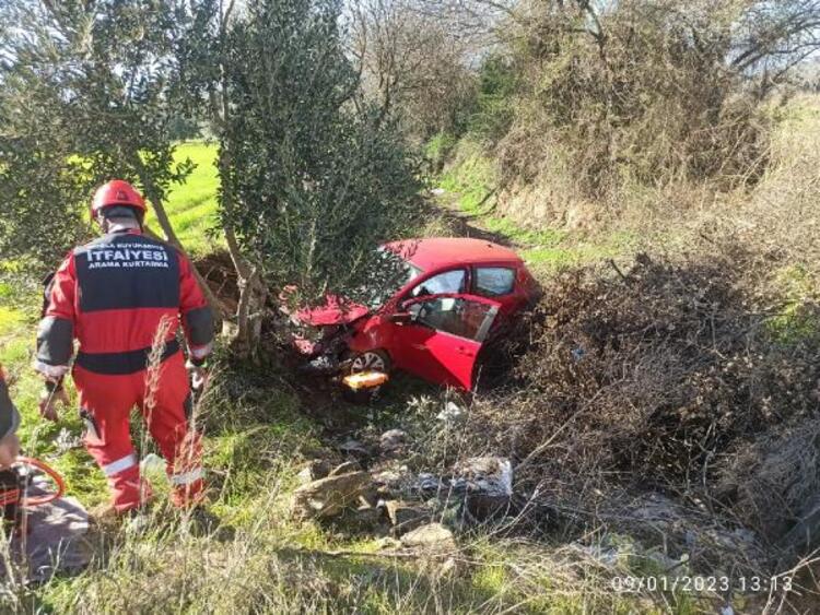 Metrelerce savrulan otomobil dere yatağında ağaca çarparak durabildi. Kazayı görenlerin ihbarı üzerine bölgeye sağlık ve itfaiye ekipleri sevk edildi.