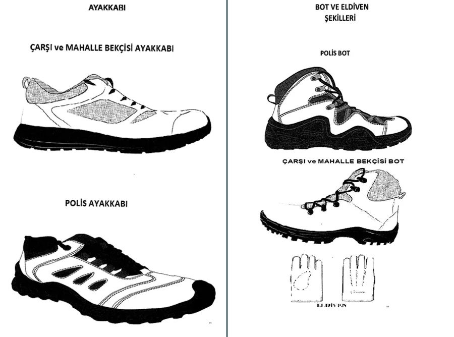 Yeni düzenlemelerle birlikte Emniyet Mensupları Kıyafet Yönetmeliği'nde değişiklikler yapıldı. Resmi Gazete'de yayımlanan çizimlerle polis ve bekçi üniforma ve ayakkabılar belirlendi.