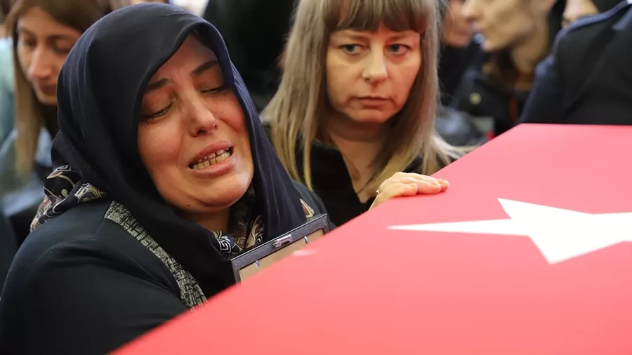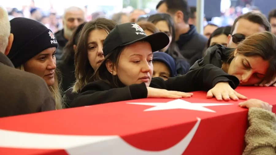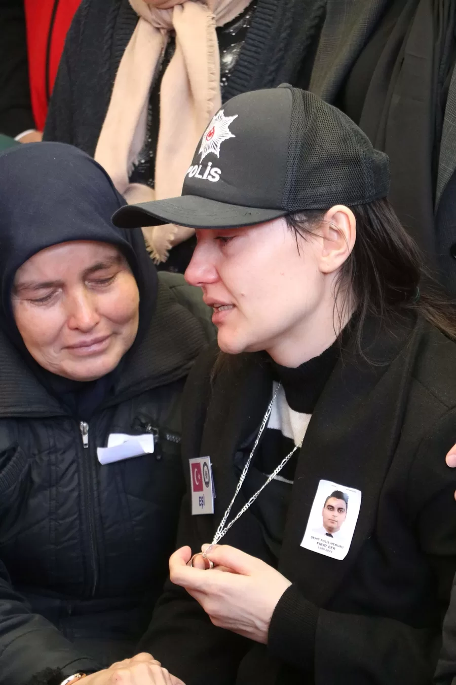 Şehit polis Fırat Deri'in eşi Demet Der ise tören boyunca boynundaki kolyesine taktığı şehit eşinin yüzüğünü elinde tutup öptü.