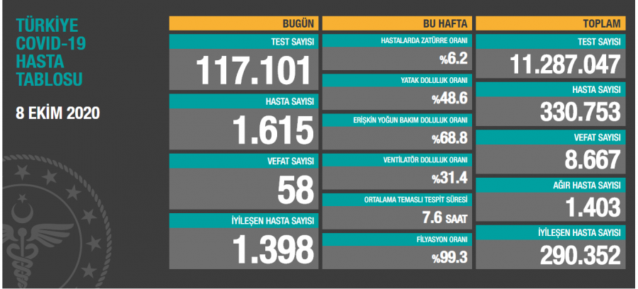 Sağlık Bakanlığı'nın internet sitesinde yer alan "Türkiye Günlük Koronavirüs Tablosu" güncellendi.
