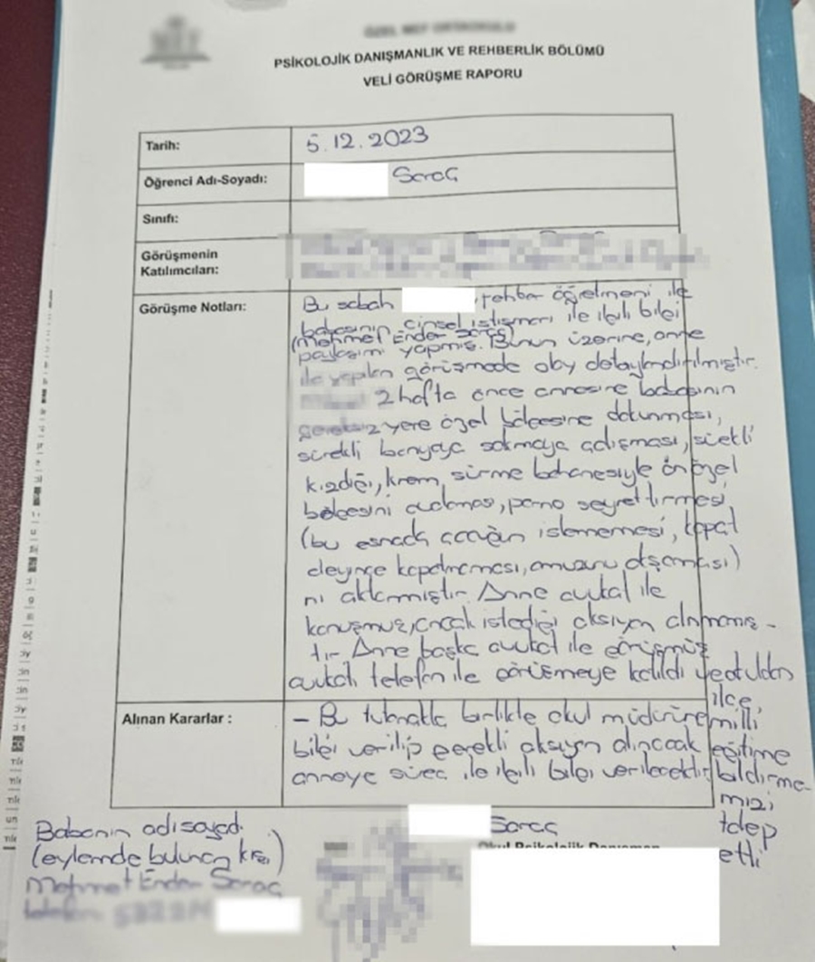 Önder ayrıca çocuğun okul rehberlik servisine başvurarak yardım istediğini ve bu süreçte Ender Saraç'ın aileyi psikolojik baskı altına alarak tehditler savurduğunu iddia etti.