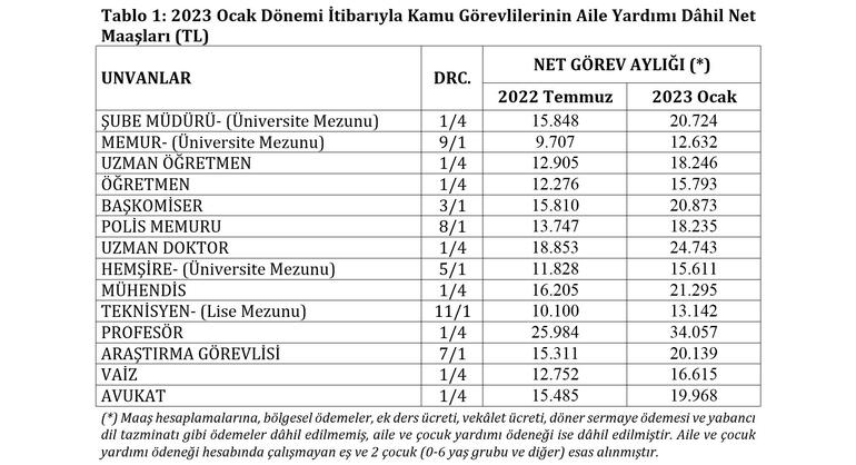 Açıklamada ayrıca 2023 yılı Ocak dönemi itibarıyla bazı kamu görevlilerinin net görev aylığı paylaşıldı.