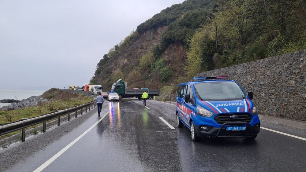 Edinilen bilgiye göre, etkili olan yağmurun ardından Alaplı- Kavukkavlı karayolunda heyelan meydana geldi. Yağmurun yumuşattığı toprak ve kaya parçalarının karayoluna yığılmasının ardından yol ulaşıma kapandı.