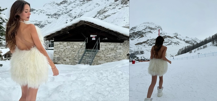 Mini ve dekolteli elbisesiyle karın içinde poz veren oyuncu, cesur tavırlarıyla adeta karları eritti.