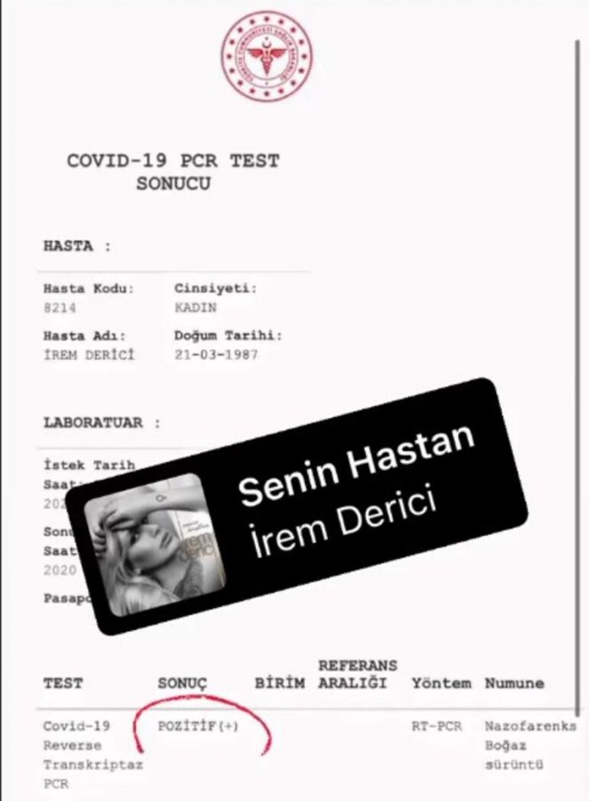 Sosyal medya hesabından test sonucunu paylaşan Derici'nin koronavirüsü 'Menajerimi Ara' adlı dizi setinde kapmış olabileceği konuşuluyor.