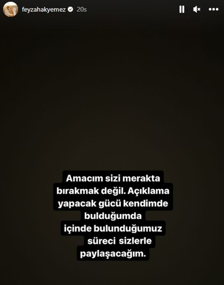 Ayrıca Instagram hesabından bir paylaşım yaparak takipçilerine seslenen Hakyemez, "Amacım sizi merakta bırakmak değil. Açıklama yapacak gücü kendimde bulduğumda içinde bulunduğumuz süreci sizlerle paylaşacağım" ifadelerini kullanarak eşi Muhammet Oğuz Başar ile birlikte çektikleri bir fotoğrafı paylaştı.