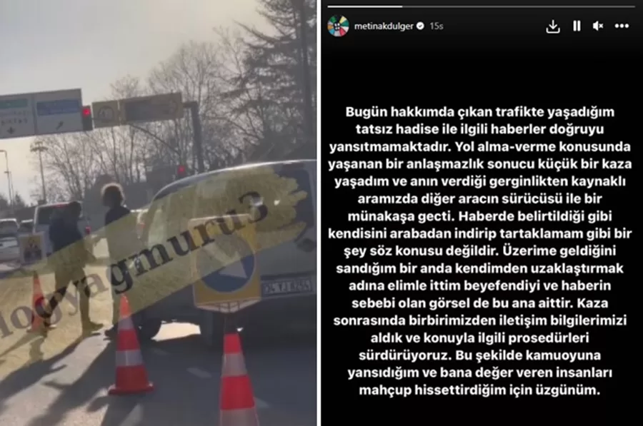 Bugün hakkımda çıkan trafikte yaşadığım tatsız hadise ile ilgili haberler doğruyu yansıtmamaktadır. Yol alma-verme konusunda yaşanan bir anlaşmazlık sonucu küçük bir kaza yaşadım ve anın verdiği gerginlikten kaynaklı aramızda diğer aracın sürücüsü ile bir münakaşa geçti. Haberde belirtildiği gibi kendisini arabadan indirip tartaklamam gibi bir şey söz konusu değildir. Üzerime geldiğini sandığım bir anda kendimden uzaklaştırmak adına elimle ittim beyefendiyi ve haberin sebebi olan görsel de bu ana aittir. Kaza sonrasında birbirimizden iletişim bilgilerimizi aldık ve konuyla ilgili prosedürleri sürdürüyoruz. Bu şekilde kamuoyuna yansıdığım ve bana değer veren insanları mahcup hissettirdiğim için üzgünüm.