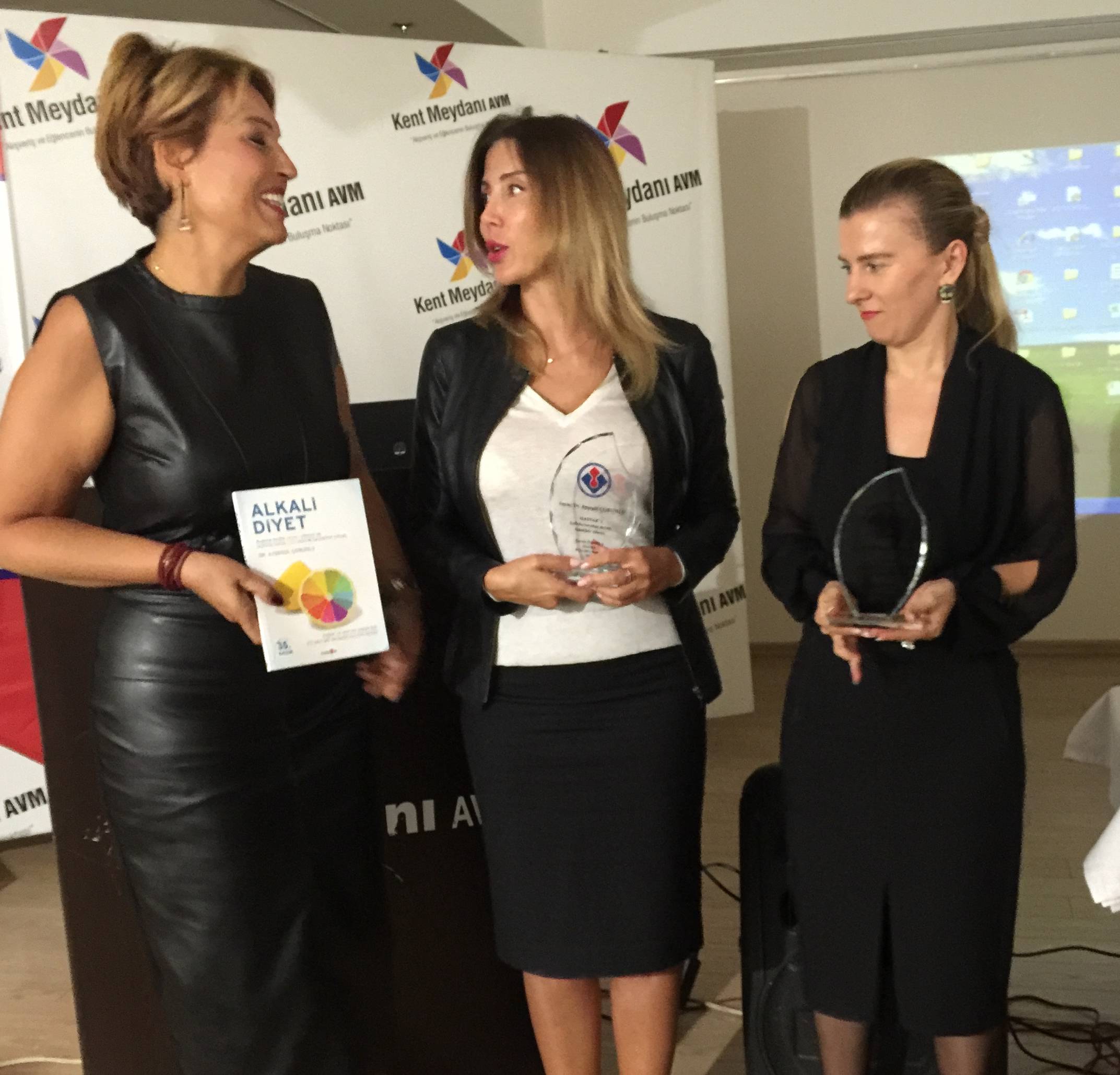 HASVAK Başkanı Zerrin Özgüle'nin, Dr. Ayşegül Çoruhlu ve Kent Meydanı AVM Pazarlama Müdürü Emel Çelikkol'a birer plaket takdim