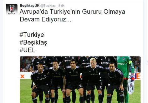 90 dakikanın bitiş düdüğünün çalmasıyla Beşiktaş'ın resmi Twitter hesabından ilginç bir mesaj paylaşıldı. Fenerbahçe ve Galatasaray'ın mağlup olduğu haftada Siyah Beyazlılar'ın galip gelmesi üzerine "Avrupa'da Türkiye'nin Gururu Olmaya Devam Ediyoruz..." mesajı paylaşıldı.
