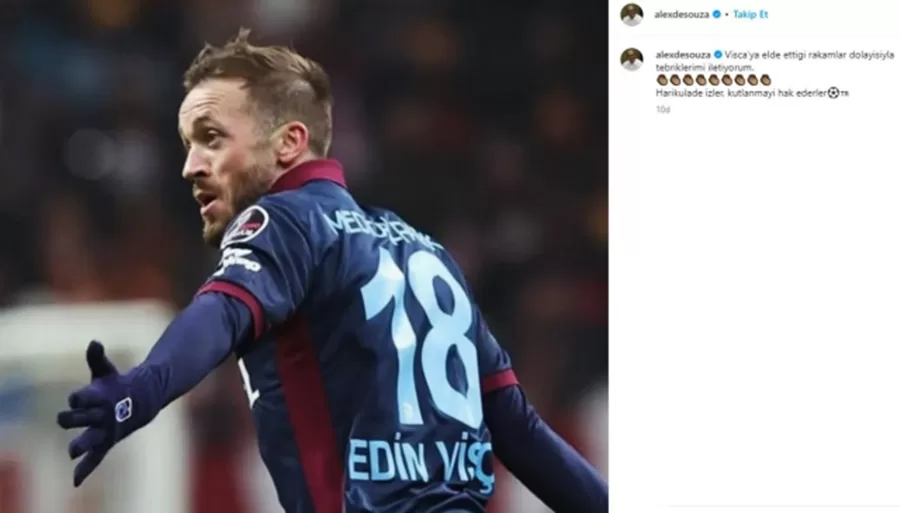 Edin Visca, toplamda 109 asistle Süper Lig tarihinde rekor kırarak, efsanevi futbolcu Alex de Souza'yı geride bırakarak en çok asist yapan isim oldu. Alex de Souza, elde ettiği bu etkileyici başarı dolayısıyla Visca'ya tebrik mesajı gönderdi. "Edin Visca'ya elde ettiği rakamlar dolayısıyla tebriklerimi iletiyorum. Harikulade izler, kutlanmayı hak ederler." şeklinde paylaşım yapan Alex, Visca'nın bu önemli başarısını takdirle karşılayarak birçok kişiden alkış topladı.