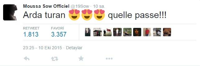 Senegalli futbolcu, Arda'nın muhteşem pası sonrasında, "Arda Turan, ne pas!" şeklinde tweet attı.